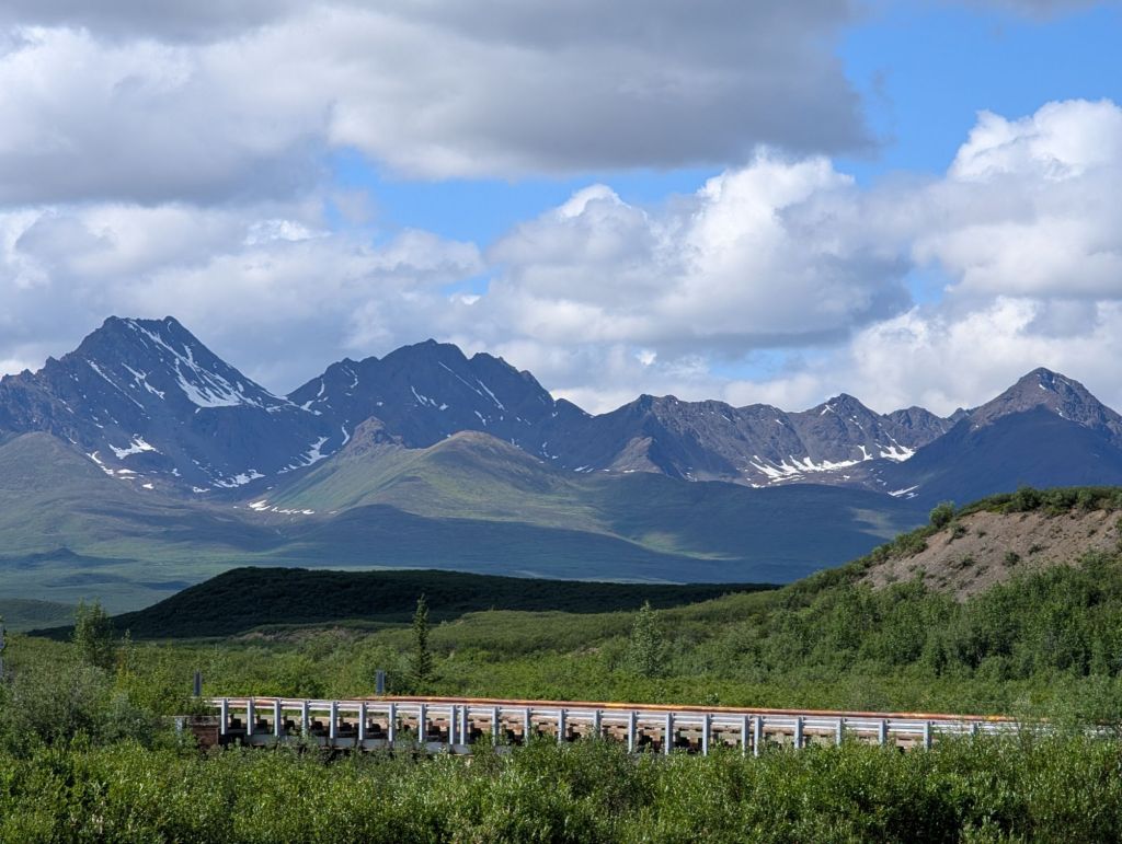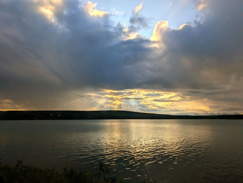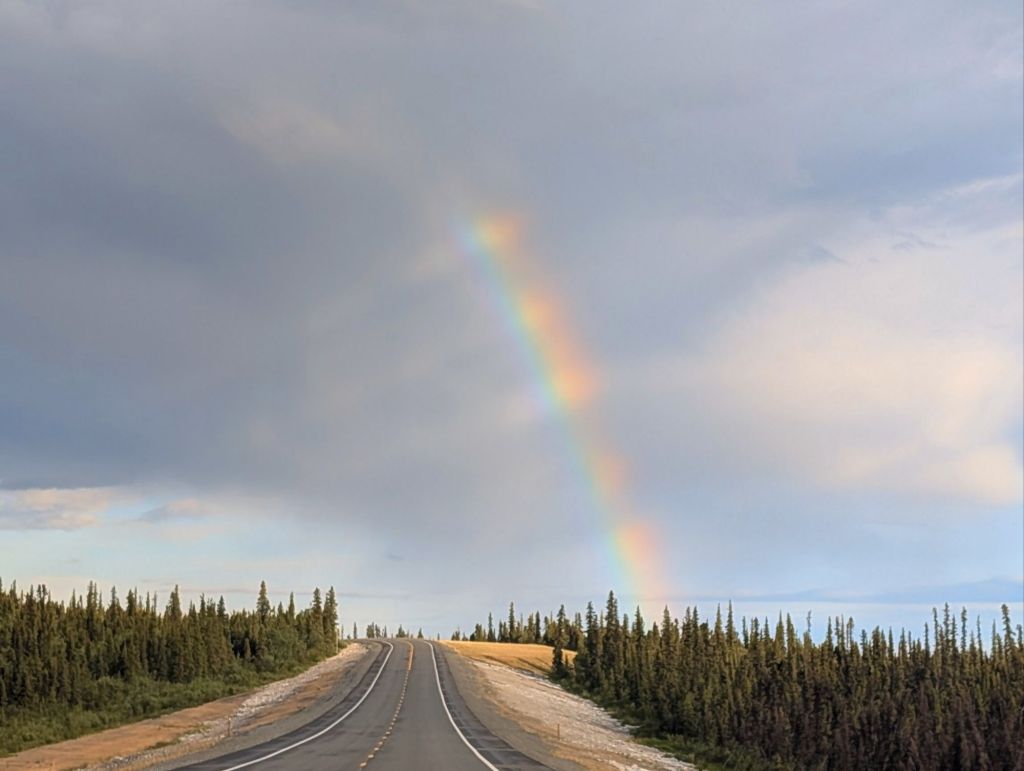 After a lovely visit (including actual meals, conversations, and non-vehicular time and a hike or two), we hit the road again — this time at 5:30 AM. Normally the Homer-to-Fairbanks run is about 10 hours, give or take a coffee stop. This time? Fourteen hours. Why? Well, we had to reroute through the Denali Highway because our usual route was still being temperamental with closures. That said, it was easily one of the most beautiful drives I’ve ever been on — potholes and all (more pics below). And when I say potholes, I mean the kind that could swallow a tire… or your whole car. Alaska’s reputation for them is well-earned, wouldn’t you say?